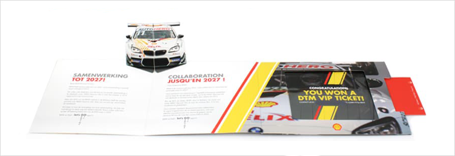 Voor de verlening van de samenwerking tussen Shell en BMW werd een opvallende en interactieve mailing ontwikkeld in de vorm van een ChangeCard gecombineerd met een pop-up element. In de kaart sprong een BMW raceauto naar voren en via een wisselbeeld werd een winactie onthuld waarbij ontvangers konden zien of zij een VIP-ticket hadden gewonnen. De combinatie van formaat, beweging en verrassing zorgde voor maximale attentiewaarde en betrokkenheid.