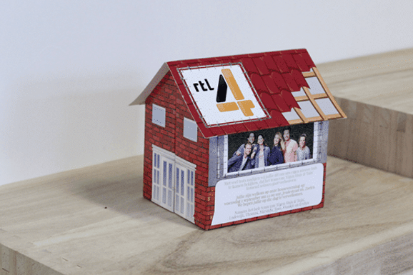 Voor de start van een nieuw seizoen van Eigen Huis & Tuin koos RTL voor een creatieve direct mail in de vorm van een huisje als uitnodiging voor de housewarming van het vernieuwde programmahuis. Het Pop-up Huisje sloot perfect aan bij het thema verbouwen en wonen en fungeerde als opvallende zakelijke uitnodiging die direct de aandacht trok. Dankzij de volledige personalisatiemogelijkheden werd het ontwerp afgestemd op de huisstijl en boodschap van RTL, waardoor de mailing niet alleen informatief was, maar ook een sterke visuele en inhoudelijke beleving creëerde.