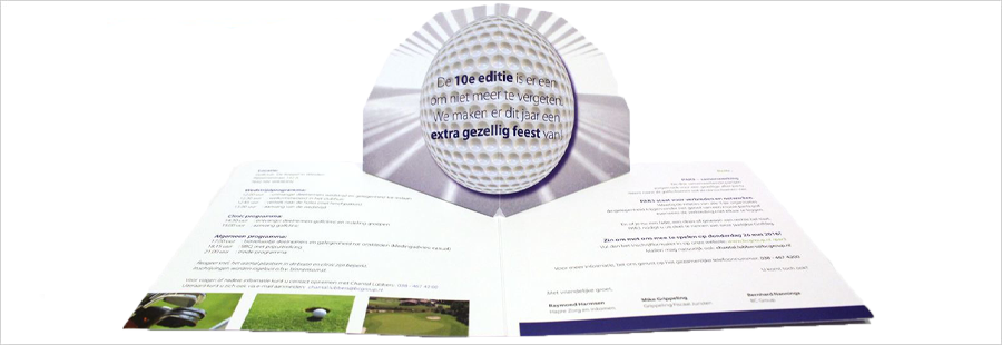 Voor de 10e editie van de PAR3 golfdag ontwikkelde LocoMail voor PAR3, een samenwerking tussen Hapre Zorg & Inkomen, Grippeling Fiscaal Juristen en BC Group, een uitnodiging in de vorm van een Pop-up Kaart. De mailing combineerde een duidelijk programmaoverzicht met een opvallend pop-up effect in de vorm van een golfbal, waarmee het jubileumevenement op een verrassende en representatieve manier werd aangekondigd.