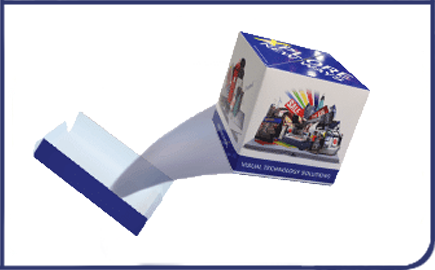 De Pop-up Kubus kan worden verpakt in een full colour bedrukte envelop, volledig afgestemd op het ontwerp van de kubus.