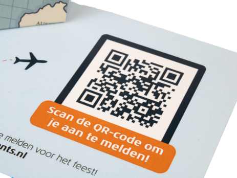 - Een fysieke uitnodiging die leidt naar een online registratiepagina