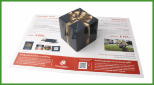 - Optioneel uit te breiden met QR-code, boodschap of klein cadeautje